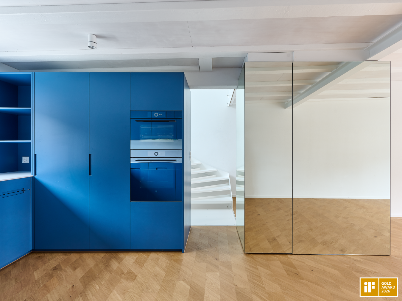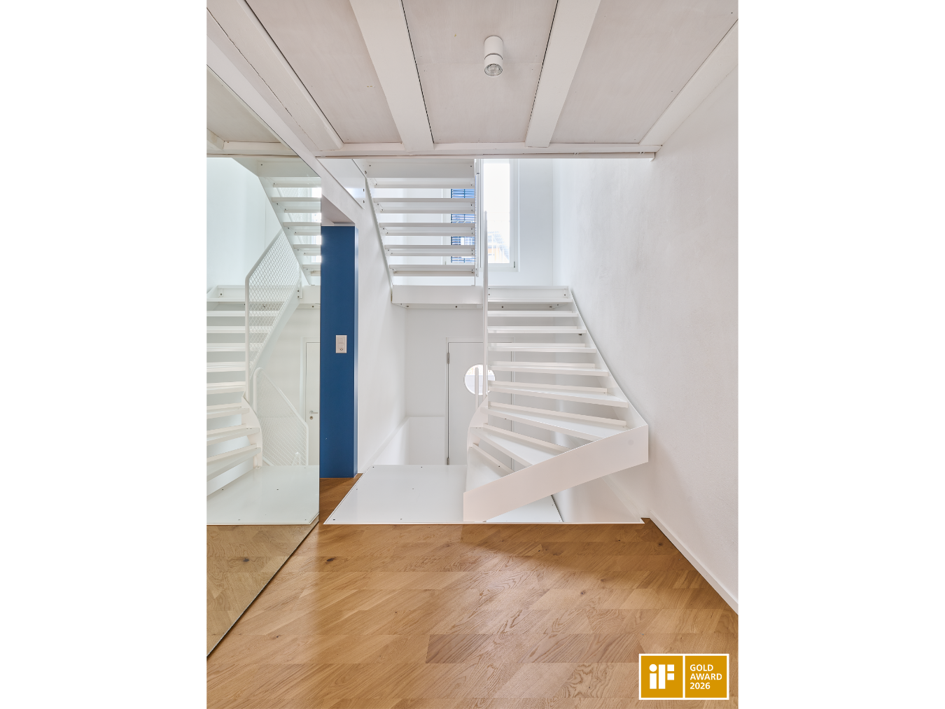 Weiterbauen im Bestand erscheint hier als pragmatische und zugleich präzise Strategie: Die vorhandene Substanz, ihre konstruktiven Möglichkeiten und heutige Anforderungen an den Wohnalltag werden miteinander in Einklang gebracht. Die Auszeichnung mit Gold im Rahmen des iF Design Award 2026 verweist weniger auf ein singuläres Objekt, als auf eine Haltung im Umgang mit bestehenden Bauten.