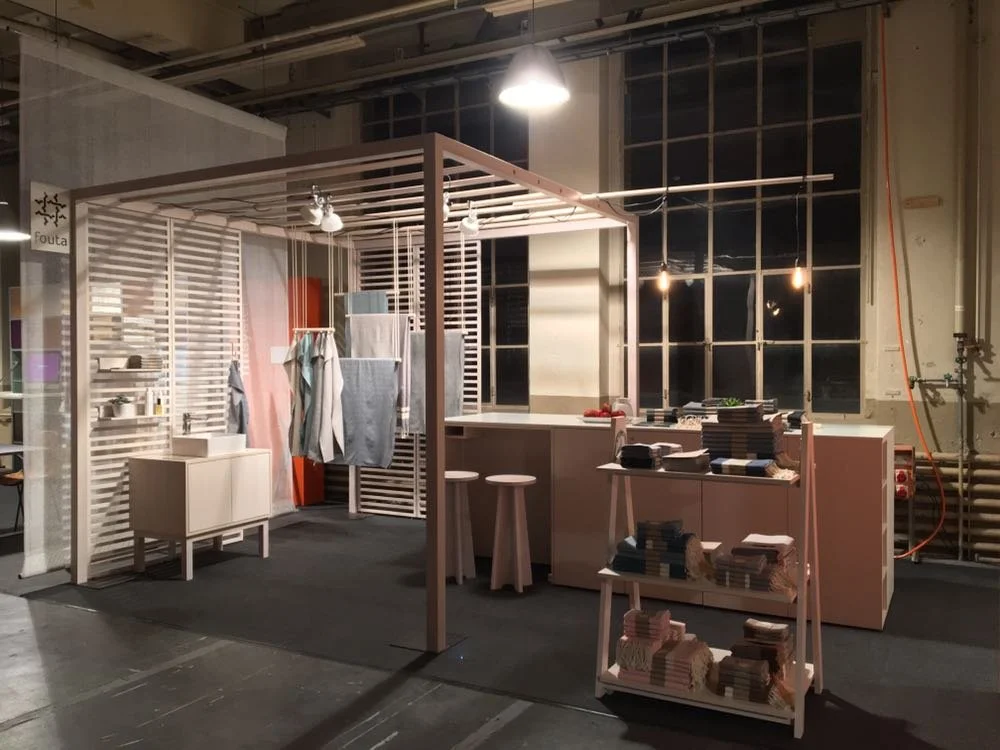 Für das junge Textillabel Fouta, eine Marke der Meyer-Mayor AG aus dem Thurgau, entwickelte Raumtakt einen ressourcenschonenden Messestand mit klarer räumlicher Sprache. Der Auftritt feierte 2017 an der Zürcher Designmesse «Neue Räume 17» Premiere und wurde 2018 auf der internationalen Fachmesse Ambiente in Frankfurt gezeigt.