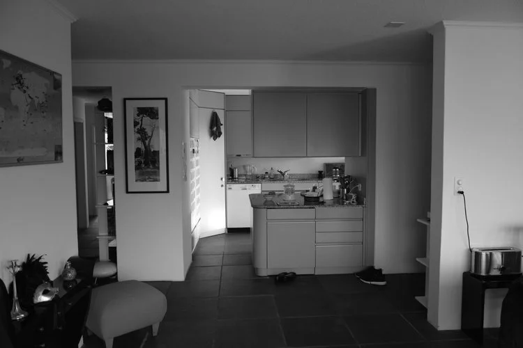 Im Fokus der ersten Etappe steht die Wohnung im Erdgeschoss. Die bestehende Gasheizung wird durch eine Luft-Wasser-Wärmepumpe ersetzt, das Bad und die Küche erneuert. Eine neue Bodenheizung sorgt für energetische Effizienz und erhöhten Wohnkomfort. Die Küche wird zum Wohn- und Essbereich geöffnet, ohne das bestehende Raumlayout grundsätzlich zu verändern. Ein vergrössertes Terrassenfenster stärkt die Beziehung zum Aussenraum.