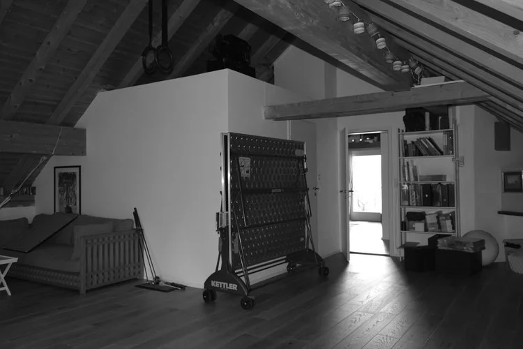 Ein zentraler Eingriff betrifft das zuvor kaum genutzte Dachgeschoss, das vollständig ausgebaut wurde. Aus zwei kleinen Kammern und einem WC entstehen zwei helle Kinderzimmer mit Galerieebenen, ein separates Bad sowie ein kompakter Arbeitsraum. Durch das Öffnen bis zum First, das Freilegen der Dachbalken und eine durchgehende Untersicht aus Birkenholz gewinnt das Dachgeschoss an Grosszügigkeit und räumlicher Qualität. Massive Fichtenbodenriemen und präzise gesetzte Dachfenster betonen den wohnlichen Charakter und sorgen für gleichmässige Belichtung.